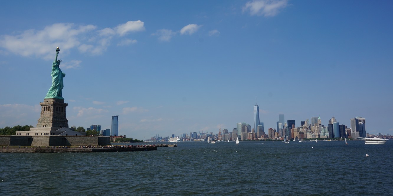 Après notre balade dans Chinatown et dans Little Italy le matin, nous avons repris le métro pour descendre à Battery Park, qui se trouve le long de la côte tout au sud-est de Manhattan et d’où partent les bateaux pour la statue de la liberté. Nous avons mangé là notre salade de riz réalisée avec amour le matin même avant de partir à la découverte de madame Liberté !